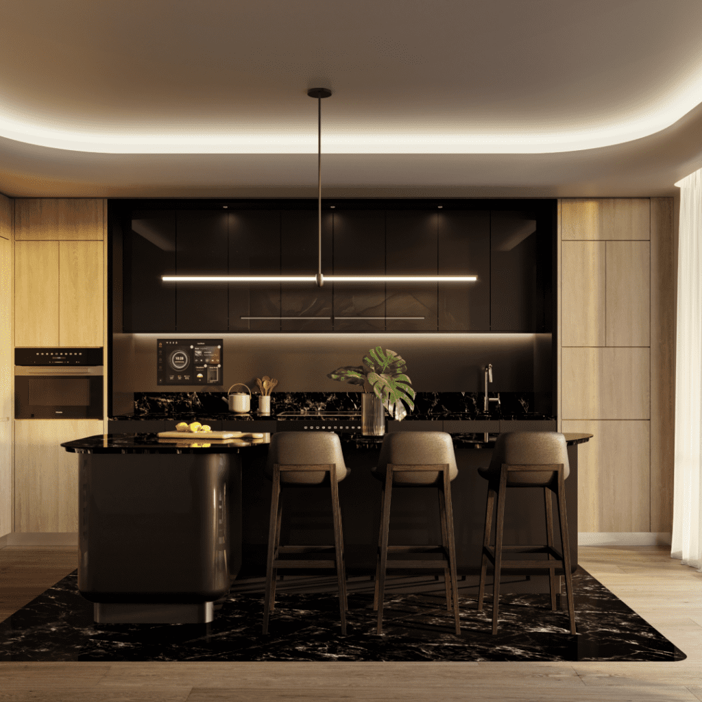 Up to 10’ floor-to-ceiling windows 5’ deep terraces Engineered hardwood floors throughout Miele washer and dryer Custom fixtures in chrome finish Integrated in-home technology Custom Woods Bagot designed kitchens in light and dark finish options, featuring fluted glass inlays, and integrated emblem pulls, polished chrome toe kick and grille, and integrated under cabinet lighting Slate grey-stained walnut lower cabinetry Black lacquer framed doors Limestone countertops Light Finish Super white-stained red oak lower cabinetry White lacquered framed doors Virginia Black Granite countertops Fully custom islands with oil rubbed bronze cabinetry and dine-in counter Tinted etched mirror backsplash with integrated technology screen Custom plumbing fixtures in chrome finish For ultimate convenience and exclusivity, the property provides meeting rooms and office suites, valet service, and even Rolls-Royce house cars for residents.